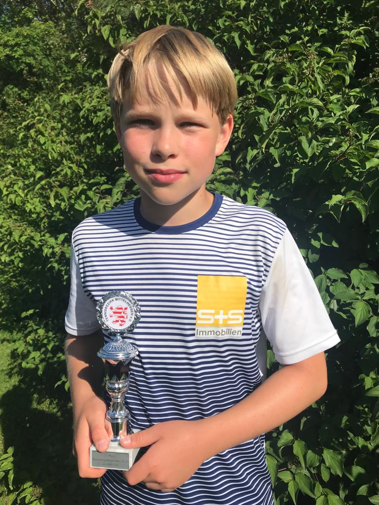 Der für den TV 1965 Marburg spielende Youngster Mats Egbring ist weiter in der Erfolgsspur. Bei den diesjährigen Bezirksmeistersschaften siegte der 11jährige in der Altersklasse U12. An Position 1 gesetzt gab er in 3 Matches insgesamt nur 4 Spiele ab und holte sich damit überlegen den Titel. Er überzeugte die Zuschauer auf der Anlage des TV 1965 Marburg mit starken Aufschlägen, setzte seine Gegner durch ständige Netzangriffe früh unter Druck und zeigte für sein Alter eine erstaunlich variable Matchführung mit Stoppbällen und Sliceschlägen.